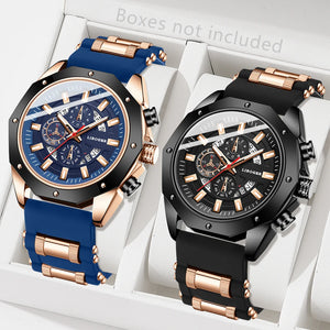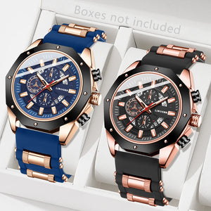 Command attention with the Geneva Epoch Titan Vanguard – a bold, masculine chronograph watch set built for leaders who demand style and performance. These standout timepieces combine precision engineering with contemporary edge, housed in a robust octagonal bezel accented by rose gold detailing.