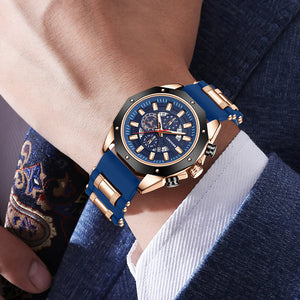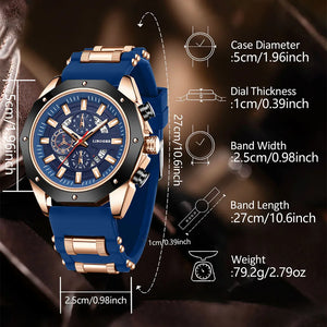 - Silicone rubber strap with metallic inserts for enhanced comfort and style