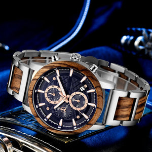A bold chronograph built with premium stainless steel and hand-crafted natural wood. Stylish, durable, and designed to elevate any outfit—meet the Geneva Epoch TimberMaster Chronograph.
