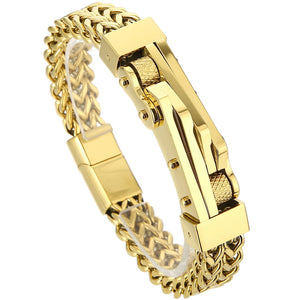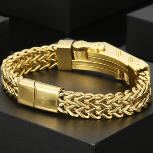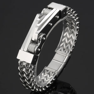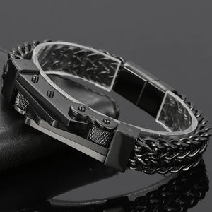 Elevate your style with this bold Aureum Titan Bracelet, crafted with a striking mechanical-inspired clasp and a durable woven chain design. Made from premium stainless steel, this bracelet blends modern engineering details with timeless sophistication.