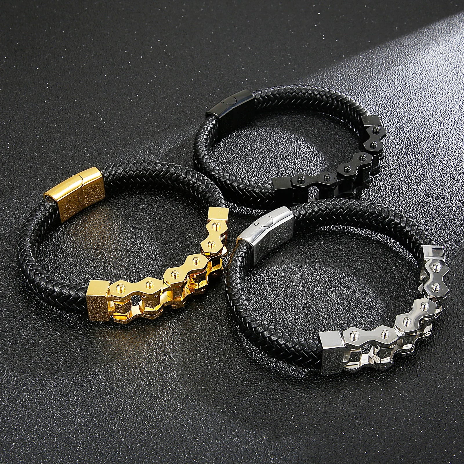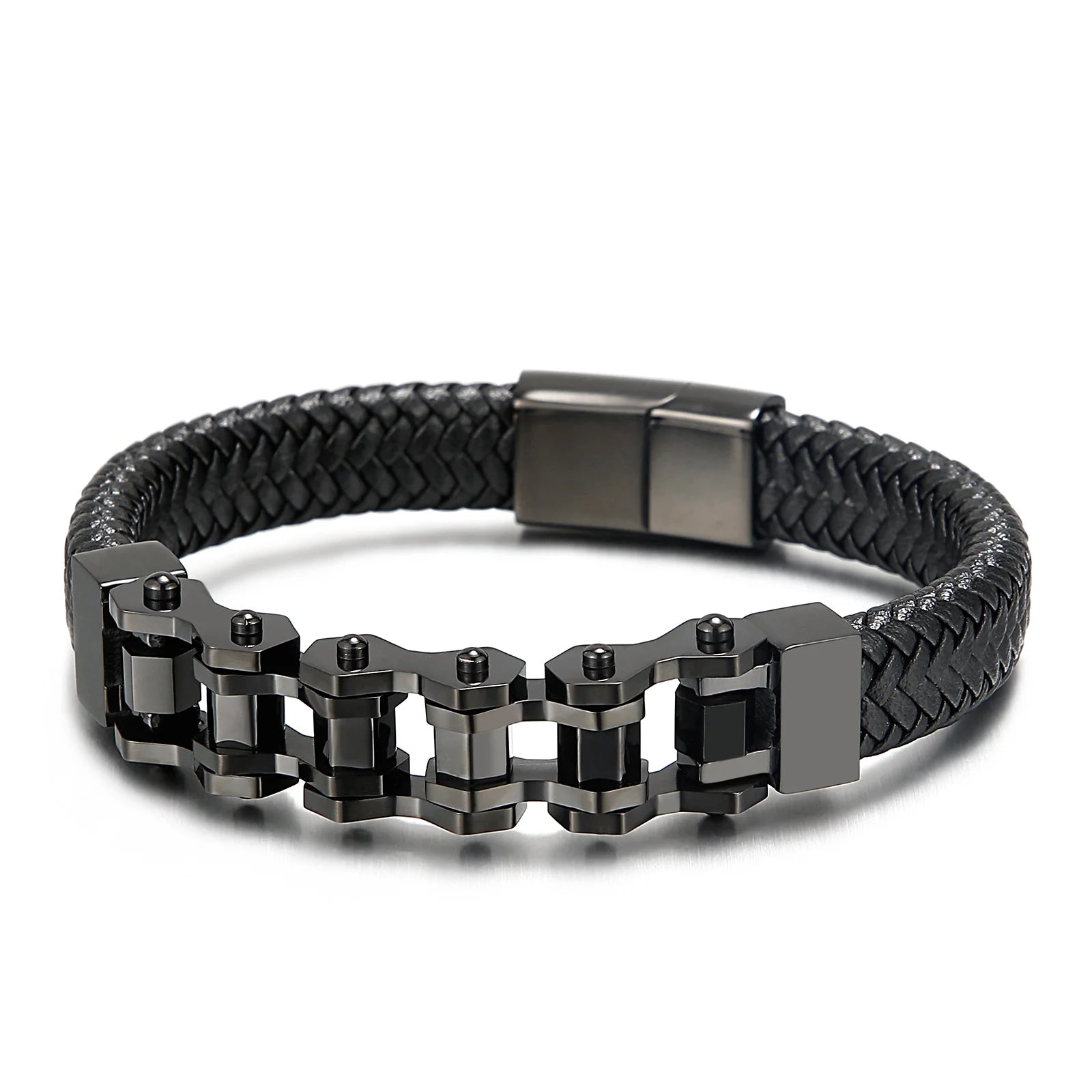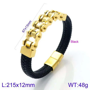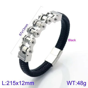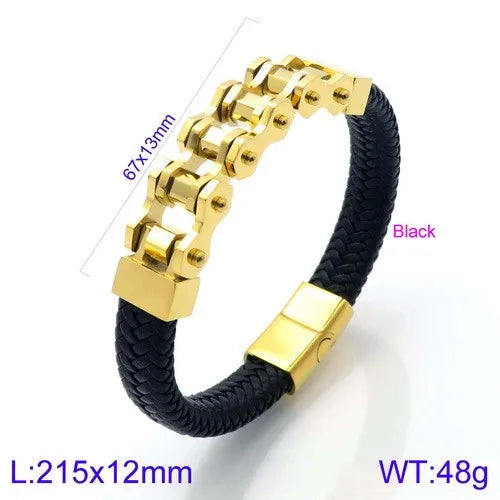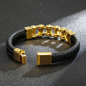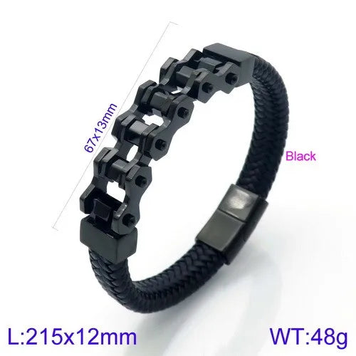 The Ironclad Leather Link Bracelet combines rugged masculinity with refined detail. Built with a thick, braided leather strap and a bold stainless-steel chain-link centerpiece, this bracelet is designed for men who value strength and style. Its modern clasp ensures a secure fit, while the fusion of leather and steel creates a versatile accessory that transitions effortlessly from casual to formal wear. Durable, stylish, and comfortable — this is the ultimate statement piece for the modern man.