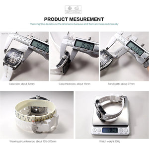 The Epoch AeroSkeleton Automatic showcases a fully exposed mechanical movement inside a sleek tonneau-shaped case. Designed with luminous markers and a high-comfort silicone strap, this watch delivers elite performance and standout style in every moment.