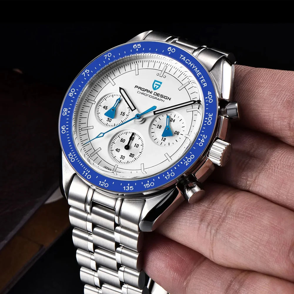 Experience luxury and precision with the PAGANI Design Quartz Chrono. Featuring a luminous dial, sapphire crystal, and waterproof design, this 2024 model combines sporty functionality with elegant style for the modern man.