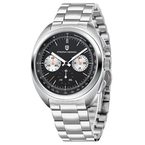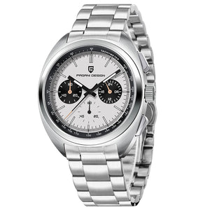 The PAGANI Design Retro Chrono combines vintage style with modern precision. Featuring the VK63 quartz chronograph movement, sapphire crystal, and waterproof leather strap, this watch delivers sporty elegance for everyday wear.