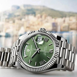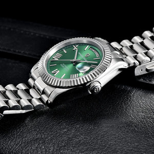 Stay punctual and stylish with the PAGANI Design Week Calendar. Featuring an automatic movement, sapphire crystal mirror, and 10ATM water resistance, this all-steel watch combines business elegance with durable performance for the modern man.